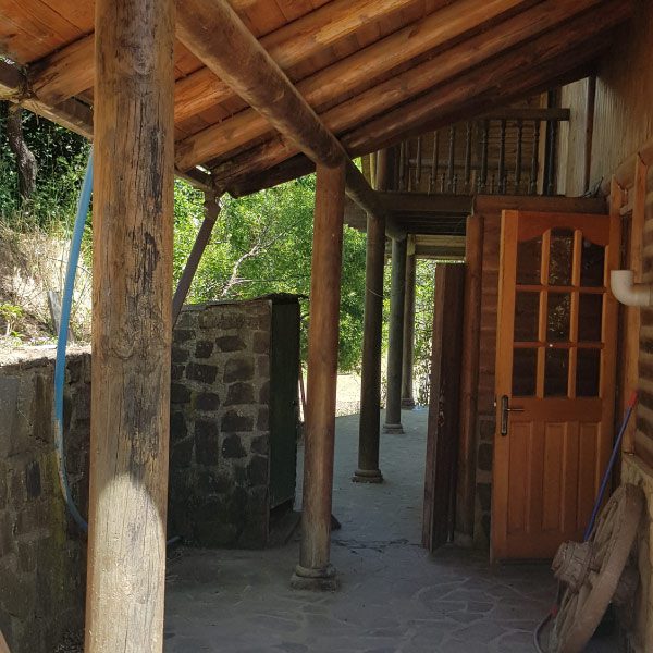 Su hermosa construcción realizada en madera cuenta con típicos hornos de barro, pesebre, Casa de estar, comedor, cocina, dos dormitorios y un baño. El Segundo piso, tiene pieza matrimonial grande, con dos terrazas a los lados, y con su baño suit. La casa tiene hermosos detalles en madera que permiten habitar un lugar con decoraciones artesanales realmente precioso.